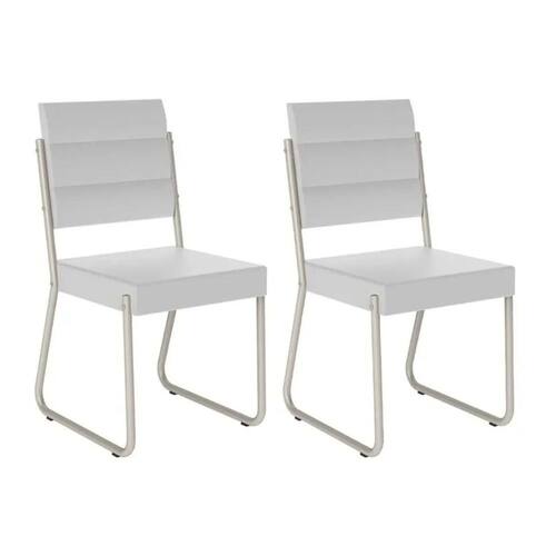 Cadeira Sala de Jantar 1736 Aço Kit 2 Uni Prata/Courano Branco - Carraro