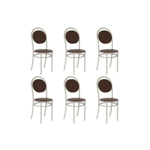 Cadeira Sala De Jantar 190 Aço Kit 6 Uni Prata/courano Cacau - Carraro
