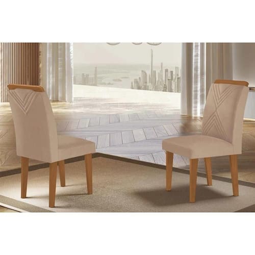 Cadeira Sala de Jantar Amsterdã Kit 2 Un Madeira Capuccino/Linho Bege Turim - Rufato - Blush