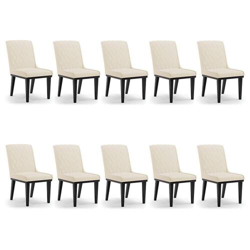 A Cadeira Sofia, é a opção ideal para quem quer um ambiente moderno e sofisticado! Um móvel super compacto, que se adequa perfeitamente em diversos ambientes. É uma ótima escolha para área de descanso, sala de estar, hall de entrada, espaço gourmet, varanda, recepção, escritório ou até mesmo para compor a mesa de jantar. Demais, né? Possui um design elegante, clássico e super convidativo, sem dúvidas ela dará um toque todo especial ao espaço que for posicionada. Feita em madeira maciça de eucalipto reflorestado, possui também base fixa em tom preto o que garante mais segurança, ótima sustentação e durabilidade à peça. O detalhe principal desta linda cadeira , fica por conta da alta-costura no encosto, em estilo matelassê. Um método aplicado no tecido de aparência acolchoada, o que confere um acabamento mais refinado à peça. Além do mais, os desenhos geométricos do tecido adicionam um toque luxuoso ao produto. Seu estofamento é feito com espuma D-23, revestida no Linho, o que garante maciez e conforto, trazendo aquela sensação de abraço e suavidade ao sentar-se. E o que falar da cor Bege A19 dessa cadeira ? Um tom extremamente elegante e versátil, perfeito para harmonizar com diferentes estilos de decoração. Afinal, não há nada melhor do que relaxar em uma Cadeira aconchegante, para ler um bom livro, ou assistir aquela série preferida, com o máximo de conforto possível, não é mesmo? Você irá se surpreender com o conforto da Cadeira Sofia. Aqui na D'Rossi, você encontra o que há de melhor em produtos, para você e sua família. Leve seu Kit 10 cadeiras Sofia e arrase!
