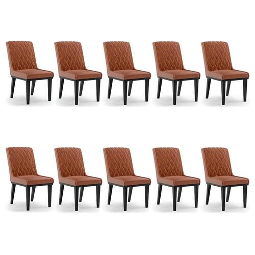 Cadeira Sala de Jantar Base Madeira Preto kit 10 Sofia Sintético PU D03 - D`Rossi - Marrom