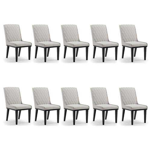 Cadeira Sala De Jantar Base Madeira Preto Kit 10 Sofia Veludo D03 - D`rossi Cor Cinza - Blush