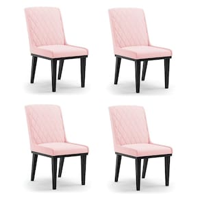 Cadeira Sala de Jantar Base Madeira Preto Kit 4 Sofia Suede D03 - D`Rossi - Rosa