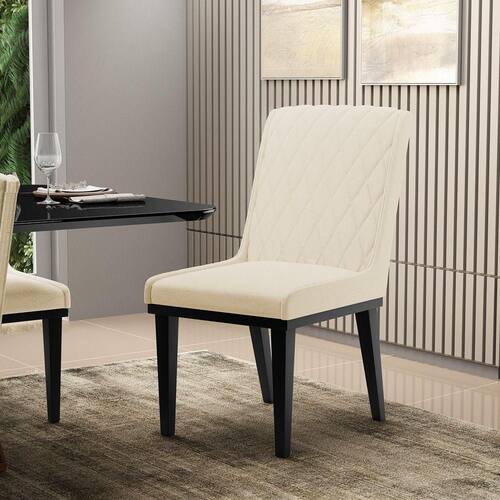 A Cadeira Sofia, é a opção ideal para quem quer um ambiente moderno e sofisticado! Um móvel super compacto, que se adequa perfeitamente em diversos ambientes. É uma ótima escolha para área de descanso, sala de estar, hall de entrada, espaço gourmet, varanda, recepção, escritório ou até mesmo para compor a mesa de jantar. Demais, né? Possui um design elegante, clássico e super convidativo, sem dúvidas ela dará um toque todo especial ao espaço que for posicionada. Feita em madeira maciça de eucalipto reflorestado, possui também base fixa em tom preto o que garante mais segurança, ótima sustentação e durabilidade à peça. O detalhe principal desta linda cadeira , fica por conta da alta-costura no encosto, em estilo matelassê. Um método aplicado no tecido de aparência acolchoada, o que confere um acabamento mais refinado à peça. Além do mais, os desenhos geométricos do tecido adicionam um toque luxuoso ao produto. Seu estofamento é feito com espuma D-23, revestida no Linho, o que garante maciez e conforto, trazendo aquela sensação de abraço e suavidade ao sentar-se. Afinal, não há nada melhor do que relaxar em uma Cadeira aconchegante, para ler um bom livro, ou assistir aquela série preferida, com o máximo de conforto possível, não é mesmo? Você irá se surpreender com o conforto da Cadeira Sofia. Aqui na D'Rossi, você encontra o que há de melhor em produtos, para você e sua família. Leve seu Kit 06 cadeiras Sofia e arrase!