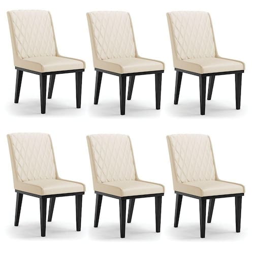 A Cadeira Sofia, é a opção ideal para quem quer um ambiente moderno e sofisticado! Um móvel super compacto, que se adequa perfeitamente em diversos ambientes. É uma ótima escolha para área de descanso, sala de estar, hall de entrada, espaço gourmet, varanda, recepção, escritório ou até mesmo para compor a mesa de jantar. Demais, né? Possui um design elegante, clássico e super convidativo, sem dúvidas ela dará um toque todo especial ao espaço que for posicionada. Feita em madeira maciça de eucalipto reflorestado, possui também base fixa em tom preto o que garante mais segurança, ótima sustentação e durabilidade à peça. O detalhe principal desta linda cadeira , fica por conta da alta-costura no encosto, em estilo matelassê. Um método aplicado no tecido de aparência acolchoada, o que confere um acabamento mais refinado à peça. Além do mais, os desenhos geométricos do tecido adicionam um toque luxuoso ao produto. Seu estofamento é feito com espuma D-23, revestida no Sintético, o que garante maciez e conforto, trazendo aquela sensação de abraço e suavidade ao sentar-se. Afinal, não há nada melhor do que relaxar em uma Cadeira aconchegante, para ler um bom livro, ou assistir aquela série preferida, com o máximo de conforto possível, não é mesmo? Você irá se surpreender com o conforto da Cadeira Sofia. Aqui na D'Rossi, você encontra o que há de melhor em produtos, para você e sua família. Leve seu Kit 06 Cadeiras Sofia e arrase!