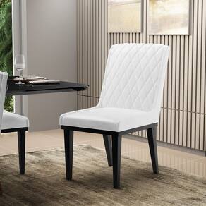 A Cadeira Sofia, é a opção ideal para quem quer um ambiente moderno e sofisticado! Um móvel super compacto, que se adequa perfeitamente em diversos ambientes. É uma ótima escolha para área de descanso, sala de estar, hall de entrada, espaço gourmet, varanda, recepção, escritório ou até mesmo para compor a mesa de jantar. Demais, né? Possui um design elegante, clássico e super convidativo, sem dúvidas ela dará um toque todo especial ao espaço que for posicionada. Feita em madeira maciça de eucalipto reflorestado, possui também base fixa em tom preto o que garante mais segurança, ótima sustentação e durabilidade à peça. O detalhe principal desta linda cadeira , fica por conta da alta-costura no encosto, em estilo matelassê. Um método aplicado no tecido de aparência acolchoada, o que confere um acabamento mais refinado à peça. Além do mais, os desenhos geométricos do tecido adicionam um toque luxuoso ao produto. Seu estofamento é feito com espuma D-23, revestida no Sintético PU, o que garante maciez e conforto, trazendo aquela sensação de abraço e suavidade ao sentar-se. E o que falar o tom Branco dessa cadeira ? Um tom extremamente elegante e versátil, perfeito para harmonizar com diferentes estilos de decoração. Afinal, não há nada melhor do que relaxar em uma Cadeira aconchegante, para ler um bom livro, ou assistir aquela série preferida, com o máximo de conforto possível, não é mesmo? Você irá se surpreender com o conforto da Cadeira Sofia. Aqui na D'Rossi, você encontra o que há de melhor em produtos, para você e sua família. Leve seu Kit 06 Cadeiras Sofia e arrase!