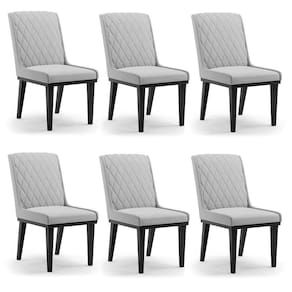 A Cadeira Sofia, é a opção ideal para quem quer um ambiente moderno e sofisticado! Um móvel super compacto, que se adequa perfeitamente em diversos ambientes. É uma ótima escolha para área de descanso, sala de estar, hall de entrada, espaço gourmet, varanda, recepção, escritório ou até mesmo para compor a mesa de jantar. Demais, né? Possui um design elegante, clássico e super convidativo, sem dúvidas ela dará um toque todo especial ao espaço que for posicionada. Feita em madeira maciça de eucalipto reflorestado, possui também base fixa em tom preto o que garante mais segurança, ótima sustentação e durabilidade à peça. O detalhe principal desta linda cadeira , fica por conta da alta-costura no encosto, em estilo matelassê. Um método aplicado no tecido de aparência acolchoada, o que confere um acabamento mais refinado à peça. Além do mais, os desenhos geométricos do tecido adicionam um toque luxuoso ao produto. Seu estofamento é feito com espuma D-23, revestida no Suede, o que garante maciez e conforto, trazendo aquela sensação de abraço e suavidade ao sentar-se. E o que falar da cor Cinza dessa cadeira ? Um tom extremamente elegante e versátil, perfeito para harmonizar com diferentes estilos de decoração. Afinal, não há nada melhor do que relaxar em uma Cadeira aconchegante, para ler um bom livro, ou assistir aquela série preferida, com o máximo de conforto possível, não é mesmo? Você irá se surpreender com o conforto da Cadeira Sofia. Aqui na D'Rossi, você encontra o que há de melhor em produtos, para você e sua família. Leve seu Kit 06 cadeiras Sofia e arrase!