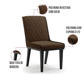 Cadeira Sala De Jantar Base Madeira Preto Kit 6 Sofia Suede D03 - D'rossi Cor Marrom