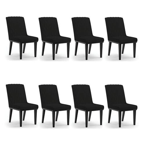 A Cadeira Sofia, é a opção ideal para quem quer um ambiente moderno e sofisticado! Um móvel super compacto, que se adequa perfeitamente em diversos ambientes. É uma ótima escolha para área de descanso, sala de estar, hall de entrada, espaço gourmet, varanda, recepção, escritório ou até mesmo para compor a mesa de jantar. Demais, né? Possui um design elegante, clássico e super convidativo, sem dúvidas ela dará um toque todo especial ao espaço que for posicionada. Feita em madeira maciça de eucalipto reflorestado, possui também base fixa em tom preto o que garante mais segurança, ótima sustentação e durabilidade à peça. O detalhe principal desta linda cadeira , fica por conta da alta-costura no encosto, em estilo matelassê. Um método aplicado no tecido de aparência acolchoada, o que confere um acabamento mais refinado à peça. Além do mais, os desenhos geométricos do tecido adicionam um toque luxuoso ao produto. Seu estofamento é feito com espuma D-23, revestida no Linho, o que garante maciez e conforto, trazendo aquela sensação de abraço e suavidade ao sentar-se. E o que falar da cor Preto A79 dessa cadeira ? Um tom extremamente elegante e versátil, perfeito para harmonizar com diferentes estilos de decoração. Afinal, não há nada melhor do que relaxar em uma Cadeira aconchegante, para ler um bom livro, ou assistir aquela série preferida, com o máximo de conforto possível, não é mesmo? Você irá se surpreender com o conforto da Cadeira Sofia. Aqui na D'Rossi, você encontra o que há de melhor em produtos, para você e sua família. Leve seu Kit 08 cadeiras Sofia e arrase!
