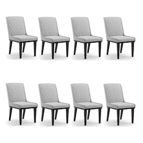 A Cadeira Sofia, é a opção ideal para quem quer um ambiente moderno e sofisticado! Um móvel super compacto, que se adequa perfeitamente em diversos ambientes. É uma ótima escolha para área de descanso, sala de estar, hall de entrada, espaço gourmet, varanda, recepção, escritório ou até mesmo para compor a mesa de jantar. Demais, né? Possui um design elegante, clássico e super convidativo, sem dúvidas ela dará um toque todo especial ao espaço que for posicionada. Feita em madeira maciça de eucalipto reflorestado, possui também base fixa em tom preto o que garante mais segurança, ótima sustentação e durabilidade à peça. O detalhe principal desta linda cadeira , fica por conta da alta-costura no encosto, em estilo matelassê. Um método aplicado no tecido de aparência acolchoada, o que confere um acabamento mais refinado à peça. Além do mais, os desenhos geométricos do tecido adicionam um toque luxuoso ao produto. Seu estofamento é feito com espuma D-23, revestida no Suede, o que garante maciez e conforto, trazendo aquela sensação de abraço e suavidade ao sentar-se. E o que falar da cor Cinza dessa cadeira ? Um tom extremamente elegante e versátil, perfeito para harmonizar com diferentes estilos de decoração. Afinal, não há nada melhor do que relaxar em uma Cadeira aconchegante, para ler um bom livro, ou assistir aquela série preferida, com o máximo de conforto possível, não é mesmo? Você irá se surpreender com o conforto da Cadeira Sofia. Aqui na D'Rossi, você encontra o que há de melhor em produtos, para você e sua família. Leve seu Kit 08 cadeiras Sofia e arrase!