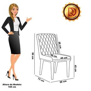 A Cadeira Sofia, é a opção ideal para quem quer um ambiente moderno e sofisticado! Um móvel super compacto, que se adequa perfeitamente em diversos ambientes. É uma ótima escolha para área de descanso, sala de estar, hall de entrada, espaço gourmet, varanda, recepção, escritório ou até mesmo para compor a mesa de jantar. Demais, né? Possui um design elegante, clássico e super convidativo, sem dúvidas ela dará um toque todo especial ao espaço que for posicionada. Feita em madeira maciça de eucalipto reflorestado, possui também base fixa em tom preto o que garante mais segurança, ótima sustentação e durabilidade à peça. O detalhe principal desta linda cadeira , fica por conta da alta-costura no encosto, em estilo matelassê. Um método aplicado no tecido de aparência acolchoada, o que confere um acabamento mais refinado à peça. Além do mais, os desenhos geométricos do tecido adicionam um toque luxuoso ao produto. Seu estofamento é feito com espuma D-23, revestida no Suede, o que garante maciez e conforto, trazendo aquela sensação de abraço e suavidade ao sentar-se. Afinal, não há nada melhor do que relaxar em uma Cadeira aconchegante, para ler um bom livro, ou assistir aquela série preferida, com o máximo de conforto possível, não é mesmo? Você irá se surpreender com o conforto da Cadeira Sofia. Aqui na D'Rossi, você encontra o que há de melhor em produtos, para você e sua família. Leve seu Kit 08 cadeiras Sofia e arrase!