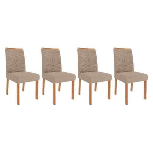 Cadeira Sala De Jantar Clarice Kit 4 Un Madeirado/ Linho Bege - Cimol
