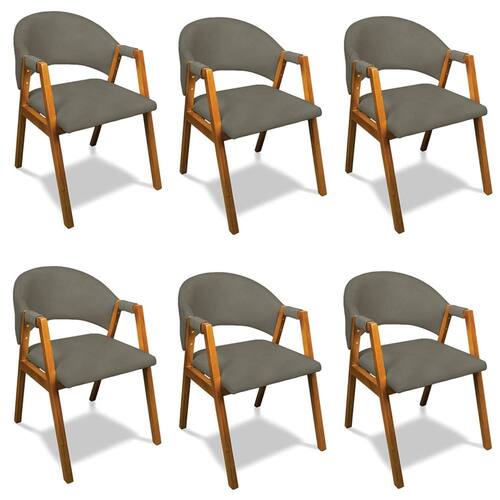 Cadeira Sala de Jantar Em Madeira kit 6 Yara Suede D03 - D`Rossi - Grafite