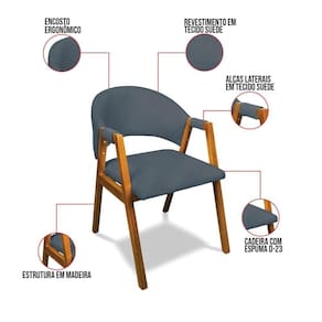 Transforme a sua sala de jantar com a Cadeira Yara, a escolha ideal para quem busca estilo, conforto e durabilidade. Com um design moderno e sofisticado, esta cadeira adiciona um toque de elegância a qualquer ambiente, seja na sala de jantar ou na cozinha. Sua base fixa em madeira e o revestimento em tecido Suede Azul Marinho combinam facilmente com diferentes estilos de decoração, tornando sua mesa ainda mais convidativa. Feita com madeira de reflorestamento de eucalipto, a Cadeira Yara é sustentável e robusta, suportando até 120 kg. Sua estrutura sólida, acabamento impecável e espuma de alta qualidade D-23 garantem um assento confortável para aproveitar cada refeição com prazer. Os braços de madeira, além de apresentarem um design vazado elegante, possuem detalhes revestidos do mesmo tecido da cadeira, proporcionando flexibilidade e conforto para apoiar seus braços, tornando-os ideais para longos jantares em família ou almoços tranquilos. Além de sua qualidade superior, a Cadeira Yara é leve e fácil de transportar, adaptando-se a cozinhas e salas de jantar de todos os tamanhos. Aproveite esta oportunidade para renovar o seu espaço com uma cadeira que une beleza, funcionalidade e um preço irresistível. Não perca tempo, garanta a sua antes que o estoque acabe e leve para casa uma peça que vai transformar seu ambiente! Dimensões do Produto: Altura Total: 83 cm Largura Total: 57 cm Profundidade Total: 65 cm Peso: 10 kg Outras medidas: Altura do Encosto: 29 cm Largura do Encosto: 46 cm Largura do Assento: 49 cm Profundidade do Assento: 48 cm Altura do chão ao Assento: 45 cm Espessura do Assento: 5 cm Espessura do Encosto: 8 cm Espessura do Braço: 3 cm Especificações do Produto: Estrutura: Madeira Eucalipto Espuma: D-23 Tecido: Suede Peso Suportado: Até 120 Kg Tipo de Pés: Base de Madeira Tipo de Encosto: Fixo Tipo de Assento: Fixo Complexidade da Montagem: Baixo Montagem: O produto vai montado Garantia: 90 dias contra defeito de fabricação Instruções de Limpeza: Utilizar um pano limpo e levemente úmido Você irá Receber: 01 Cadeira Sala de Jantar - Entregue em: 01 Volume
