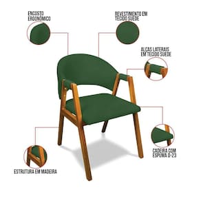 Transforme a sua sala de jantar com a Cadeira Yara, a escolha ideal para quem busca estilo, conforto e durabilidade. Com um design moderno e sofisticado, esta cadeira adiciona um toque de elegância a qualquer ambiente, seja na sala de jantar ou na cozinha. Sua base fixa em madeira e o revestimento em tecido Suede Verde combinam facilmente com diferentes estilos de decoração, tornando sua mesa ainda mais convidativa. Feita com madeira de reflorestamento de eucalipto, a Cadeira Yara é sustentável e robusta, suportando até 120 kg. Sua estrutura sólida, acabamento impecável e espuma de alta qualidade D-23 garantem um assento confortável para aproveitar cada refeição com prazer. Os braços de madeira, além de apresentarem um design vazado elegante, possuem detalhes revestidos do mesmo tecido da cadeira, proporcionando flexibilidade e conforto para apoiar seus braços, tornando-os ideais para longos jantares em família ou almoços tranquilos. Além de sua qualidade superior, a Cadeira Yara é leve e fácil de transportar, adaptando-se a cozinhas e salas de jantar de todos os tamanhos. Aproveite esta oportunidade para renovar o seu espaço com uma cadeira que une beleza, funcionalidade e um preço irresistível. Não perca tempo, garanta a sua antes que o estoque acabe e leve para casa uma peça que vai transformar seu ambiente! Dimensões do Produto: Altura Total: 83 cm Largura Total: 57 cm Profundidade Total: 65 cm Peso: 10 kg Outras medidas: Altura do Encosto: 29 cm Largura do Encosto: 46 cm Largura do Assento: 49 cm Profundidade do Assento: 48 cm Altura do chão ao Assento: 45 cm Espessura do Assento: 5 cm Espessura do Encosto: 8 cm Espessura do Braço: 3 cm Especificações do Produto: Estrutura: Madeira Eucalipto Espuma: D-23 Tecido: Suede Peso Suportado: Até 120 Kg Tipo de Pés: Base de Madeira Tipo de Encosto: Fixo Tipo de Assento: Fixo Complexidade da Montagem: Baixo Montagem: O produto vai montado Garantia: 90 dias contra defeito de fabricação Instruções de Limpeza: Utilizar um pano limpo e levemente úmido Você irá Receber: 01 Cadeira Sala de Jantar - Entregue em: 01 Volume
