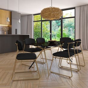 Cadeira Sala de Jantar Encosto e Assentos Estofados Linho Jaraguá Dourado/Duna Preto - Marrom