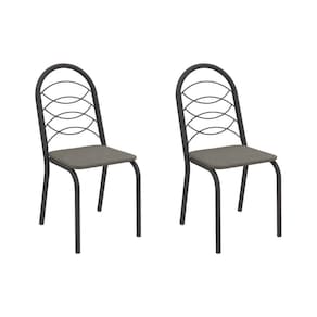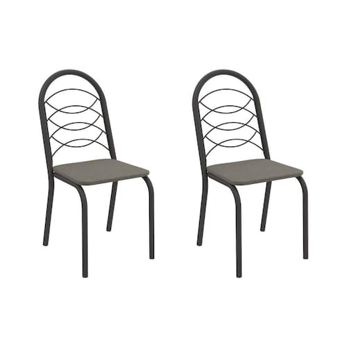 Cadeira Sala de Jantar Holanda 2C009PRF Aço Kit 2 Un Preto/Linho Escuro - Kappesberg