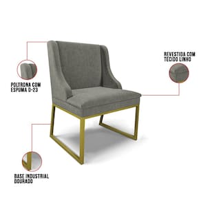 Cadeira Sala de Jantar Industrial Dourado kit 6 Liz Linho Grafite D03 - D`Rossi