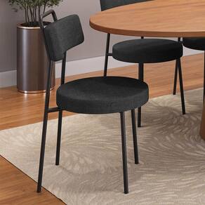 Seu encosto e assento estofados com espuma laminada garantem maior conforto mesmo em longos períodos de uso. A estrutura fixa em aço carbono com pintura epóxi preta confere durabilidade, resistência e um visual sofisticado que combina com diversos estilos de decoração.