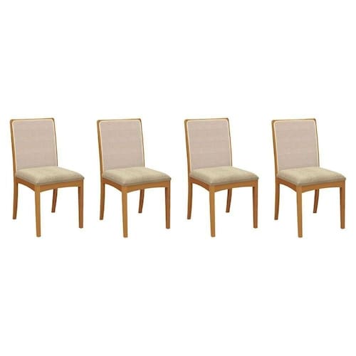 Cadeira Sala De Jantar Lara Kit 4 Un Carvalho/linho Bege Tela Bege A058a - Kappesberg