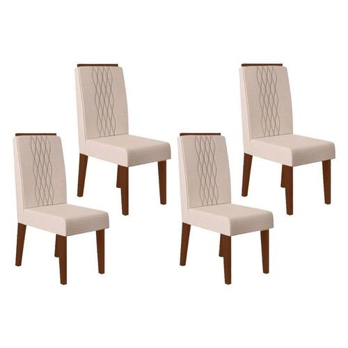 Cadeira Sala de Jantar Lia Kit 4 Un Freijo/Linho Neve - DJ Móveis
