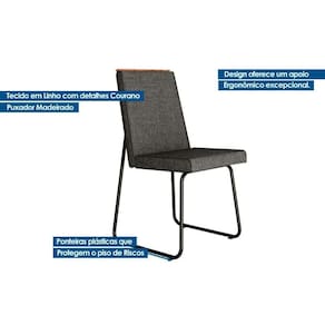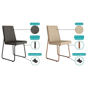 Cadeira Sala de Jantar Lira 1752 Aço Kit 2 Uni Preto/Linho Grafite/Courano Preto - Carraro