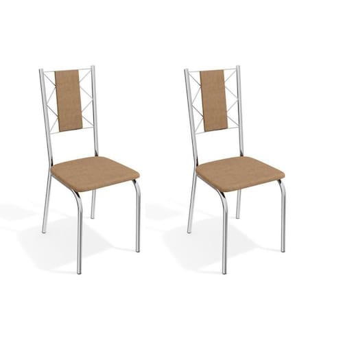 Cadeira Sala De Jantar Lisboa 2c076 Kit 2 Un Cromado/linho Capuccino - Kappesberg