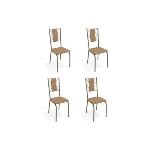 Cadeira Sala de Jantar Lisboa 4C076 Kit 4 Un Níquel/Linho Capuccino - Kappesberg