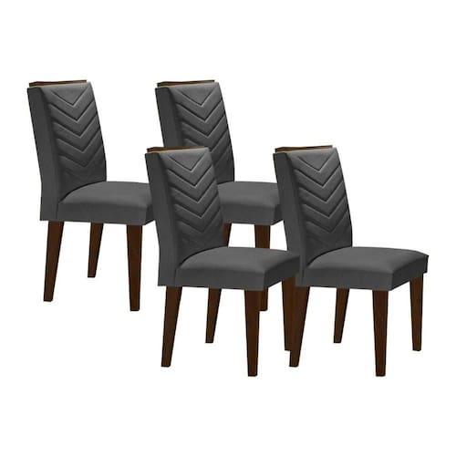 Cadeira Sala de Jantar Londrina Madeira Kit 4 Un Capuccino - Linho Grafite - Rufato