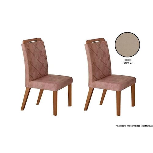 Cadeira Sala de Jantar Melissa Madeira Kit 2 Un Capuccino/Linho Turim - Rufato - Blush