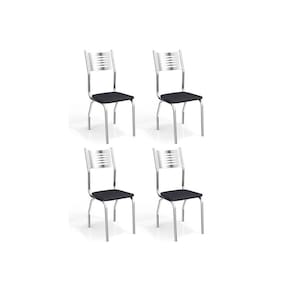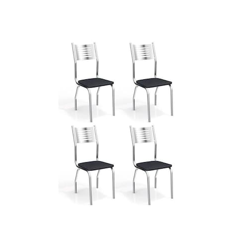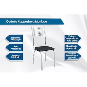 Cadeira Sala de Jantar Munique 4C047 Kit 4 Un Cromado/Courano Preto - Kappesberg