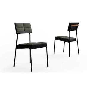 Cadeira Sala de Jantar Neo 1740 Aço Kit 2 Uni Preto/Linho Grafite/Courino Preto - Carraro