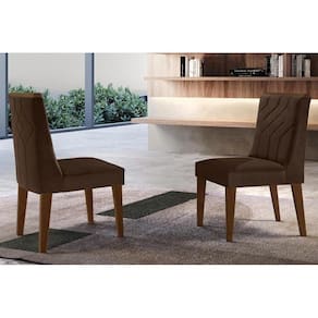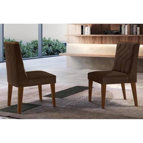 Cadeira Sala de Jantar Nevada Kit 2 Un Madeira Capuccino/Veludo Marrom - Rufato