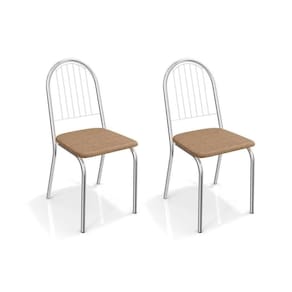 Cadeira Sala de Jantar Noruega 2C077 Kit 2 Un Cromado/Linho Capuccino - Kappesberg