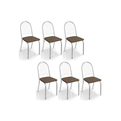 Cadeira Sala de Jantar Noruega 2C077 Kit 6 Un Cromado/Marrom 21 - Kappesberg