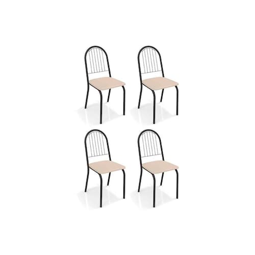 Cadeira Sala de Jantar Noruega 4C077PRF Kit 4 Un Preto Fosco/Courano Nude - Kappesberg