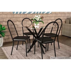 Cadeira Sala de Jantar Noruega 4C077PRF Aço Kit 4 Uni Preto Fosco/Courano Preto 110 - Kappesberg