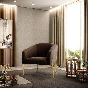 Cadeira Sala De Jantar Pé De Ferro Dourado Stella Suede D03 - D'rossi Cor Marrom