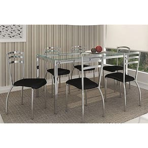 Cadeira Sala de Jantar Portugal 2C007CR Aço Kit 2 Uni Cromada - Assento Preto 110 - Kappesberg