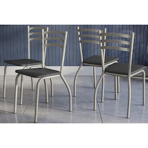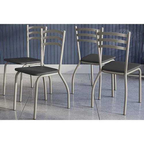 Cadeira Sala de Jantar Portugal 4C007NK Aço Kit 4 Uni Niquel/Courano Preto - Kappesberg