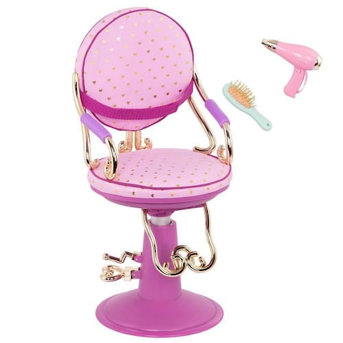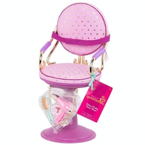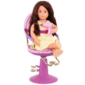 A Cadeira de Salão de Beleza Our Generation é perfeita para o seu salão de beleza de bonecas de 46cm. Com ela, você poderá levar os penteados da sua boneca a outro nível! Sente suas bonecas na cadeira e prenda-as com a alça de segurança para garantir que fiquem seguras durante a brincadeira.