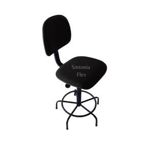 Cadeira secretaria caixa alta com base de ferro sem rodízio tecido preto Cadeira caixa - com regulagem de altura a gás - pés fixos- com sapata - prolongador de tamanho - madeira