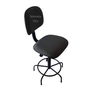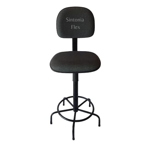 Cadeira secretaria caixa alta com base de ferro sem rodízio tecido cinza Cadeira caixa - com regulagem de altura a gás - pés fixos- com sapata - prolongador de tamanho - madeira