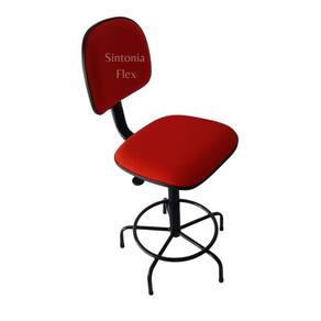 Cadeira secretaria caixa alta com base de ferro sem rodízio tecido vermelho Cadeira caixa - com regulagem de altura a gás - pés fixos- com sapata - prolongador de tamanho - madeira