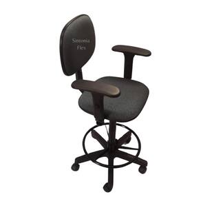 Cadeira secretaria caixa alta com - braço - base de rodízio - com aro - recepção mercado balcão tecido cinza/preto Cadeira caixa - com regulagem de altura a gás - estrela com rodízios - prolongador de tamanho - madeira