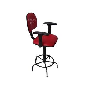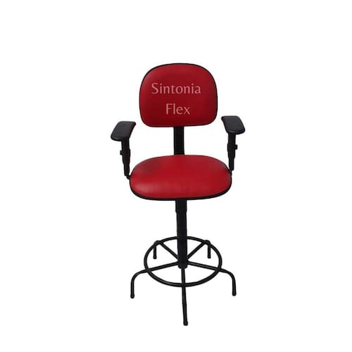 Cadeira secretaria caixa alta com braço de regulagem de altura - a gás - base de ferro fixa recepçao - corano vermelho Cadeira caixa - aro para apoio dos pés - prolongador de altura - madeira reflorestada - espuma injetada - bordas em pvc flexivel - pés fixo - braço com regulagem Altura do chão ao assento: Mínima 62 cm Máximo 75 cm Marca: Sintonia Flex