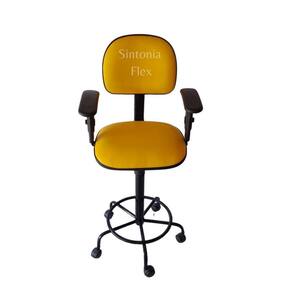 Cadeira secretaria caixa alta - braço com regulagem de altura - estrela de ferro com rodízio - aro - corano amarelo Cadeira caixa - aro para apoio dos pés - prolongador de altura - madeira reflorestada - espuma injetada - revestida em corano cipatex - bordas em pvc flexivel - pés de ferro com rodízio - pintura eletrostática epoxi - estrutura em aço com acabamento em pvc Altura do chão ao assento: Mínima 63 cm Máximo 75 cm Peso maximo recomendado: 110 kl Marca: Sintonia Flex
