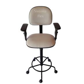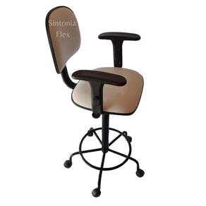 Cadeira secretaria caixa alta - braço com regulagem de altura - estrela de ferro com rodízio - aro - corano branco Cadeira caixa - aro para apoio dos pés - prolongador de altura - madeira reflorestada - espuma injetada - revestida em corano cipatex - bordas em pvc flexivel - pés de ferro com rodízio - pintura eletrostática epoxi - estrutura em aço com acabamento em pvc Altura do chão ao assento: Mínima 63 cm Máximo 75 cm Peso maximo recomendado: 110 kl Marca: Não Informado