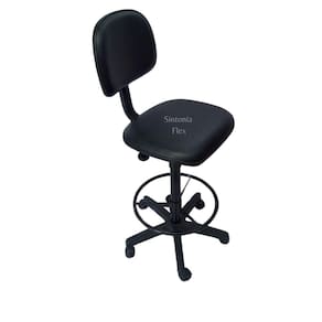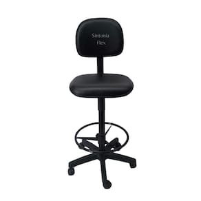 Cadeira secretaria caixa alta -com aro base de rodízio para recepção mercado balcão corano preto Cadeira caixa - com regulagem de altura a gás - estrela com rodízios - prolongador de tamanho - madeira