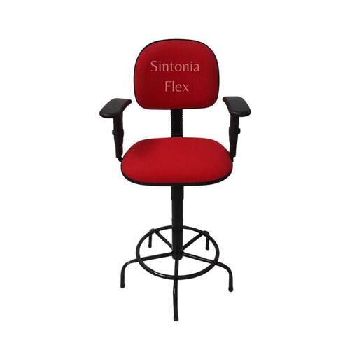 Cadeira secretaria caixa alta com braço de regulagem de altura - a gás - base de ferro fixa recpçao-tecido vermelho